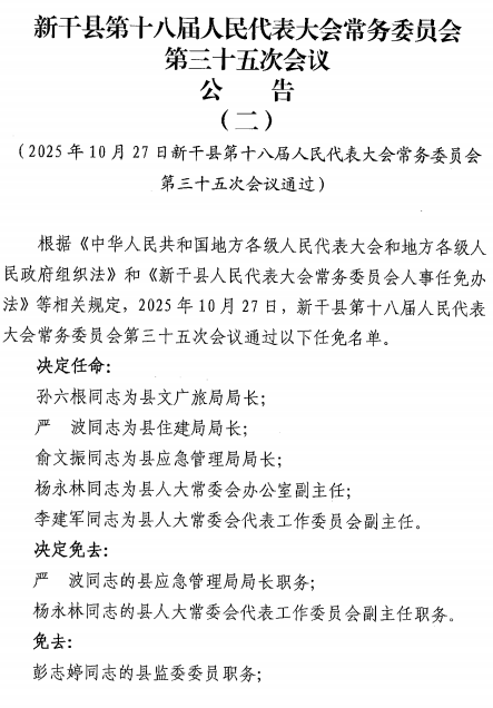 新干县第十八届人民代表大会常务委员会第三十五次会议公告