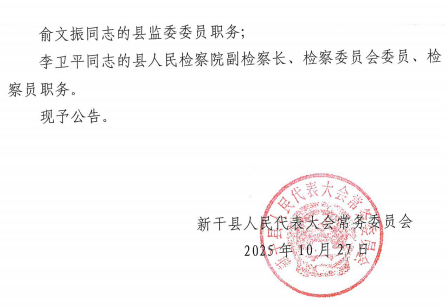 新干县第十八届人民代表大会常务委员会第三十三次会议公告