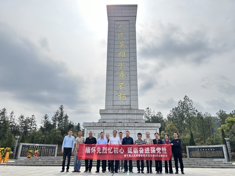 4月3日,新干县人大常委会机关党支部开展以“缅怀先烈忆初心 砥砺奋进强党性”为主题的党日活动。县人大常委会副主任邓干明、邓震宇、方亮带领人大机关党员到七琴镇王众岭烈士陵园敬献鲜花,随后到麦斜镇毛泽东旧居参观,缅怀革命先烈。参观结束后开展了学习研讨活动。